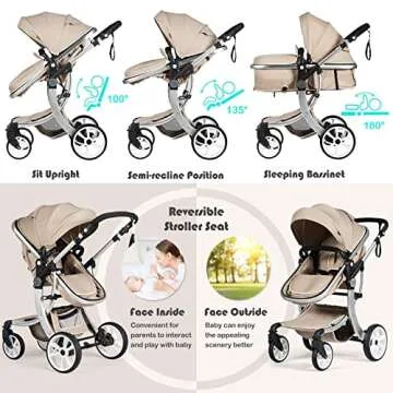 BABY JOY 2-in-1 High Landscape Baby Stroller, Reversible Bassinet Reclining Stroller, Foldable Push Chair w/Adjustable Canopy, Storage Bag, Foot Cover, Rain Cover & Net, Aluminum Alloy Frame (Beige)