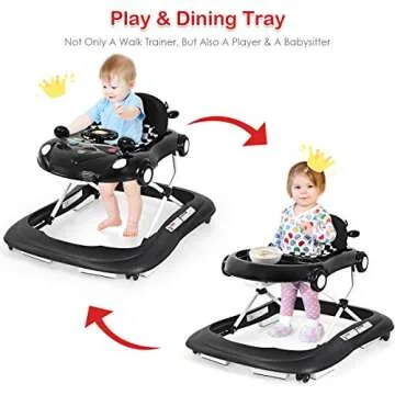 Show moreWelcome to the exciting world of the BABY JOY Baby Walker! This activity walker is not just a regular walking aid; it's a mini race car designed to simulate an exhilarating driving experience for your little one. Tailored for infants aged 6-18 months and weighing up to 26.5 lbs, this walker captivates their imagination with a functional steering wheel, real mirrors, and interactive sounds that enhance playtime. The sleek black design coupled with adjustable height settings ensures that it grows alongside your child, providing safety and fun at every stage of their development.