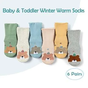 Baby Non Slip Socks Baby Boys Winter Warm Socks with Grips for Baby Girls Terry Socks Bears 12-24 Months
