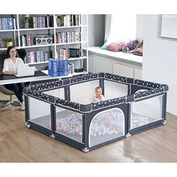 Baby Playpen, ANGELBLISS Playpen for Babies and Toddlers, Extra Large Play Yard with Gate, Indoor & Outdoor Kids Safety Play Pen Area with Star Print (Dark Grey, 71"×59")