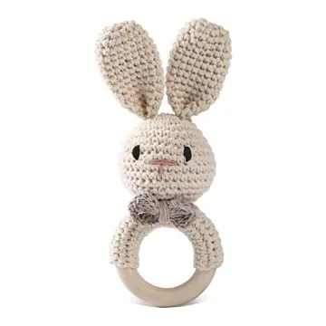 Moreover, it's suitable for teething babies, combining soft organic cotton with a smooth wooden handle that is safe for munching on. A genuine appearance patent backs its unique design, ensuring you have a standout gift that is both functional and adorable. Our crochet rabbit baby rattle promises not just hours of fun but also safe playtime experiences for your cherished little one!