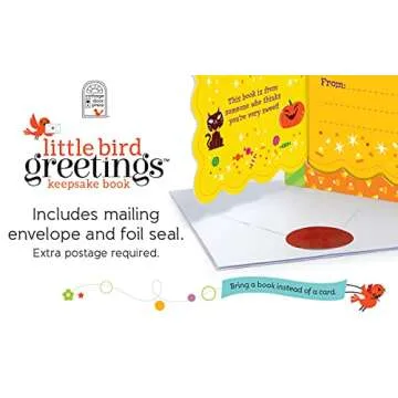 This unique book combines the essence of a greeting card with the joy of a first storybook, featuring a To-From section on the front flap, perfect for a heartfelt message. Not only does it include an envelope and a foil seal, but it also becomes a cherished memento that can be treasured over the years. As your little pumpkin grows, the engaging questions foster imagination, inviting them to think about their favorite Halloween memories like pumpkins, costumes, and trick-or-treating.