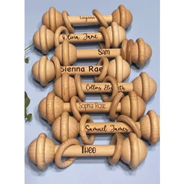 Show moreIntroduce your little one to the joys of exploration with the Baby Salute Personalized Custom Rattle, an exquisite blend of play and style. Crafted from natural beechwood, this Montessori-inspired rattle is not just a toy; it’s a unique keepsake designed to ignite curiosity and develop essential motor skills. Personalizable with your child's name, this rattle offers a charming touch that makes it a wonderful addition to any nursery.