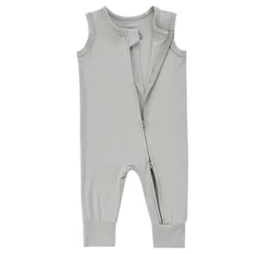 Baby Sleeveless Romper Zipper Toddler Summer Jumpsuit Rayon Outfits Infant Footless Pajamas(Light Grey & Dark Grey, 3-6m)