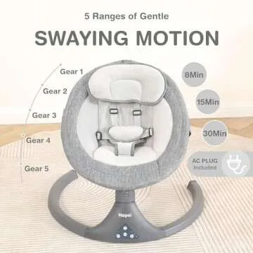 Show moreIntroducing the Napei Baby Swing and Bouncer, where cutting-edge design meets unparalleled comfort for your little one. This electric portable baby swing is not just a bouncer; it’s a serene oasis crafted for infants and toddlers aged 0-9 months, with a weight capacity of up to 22 pounds. Boasting 5 soothing swing modes and a whisper-quiet operation, this swing creates a peaceful environment that promotes restful sleep and plays, making it an essential addition to your nursery. Experience the perfect blend of functionality, safety, and comfort, where every gentle motion lulls your baby into a world of tranquility.