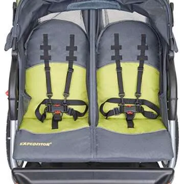 Show moreIntroducing the Baby Trend Expedition® Double Jogger in Carbon, your ultimate companion for active family outings! This jogger is not only designed for the adventurous parent but also prioritizes comfort and safety for your children. With its quick release wheels, transitioning from jogging to storage and travel is a breeze, making it as convenient as it is stylish. Imagine gliding along the park trails with your little ones securely strapped in—this jogger can truly transform your outdoor experience.