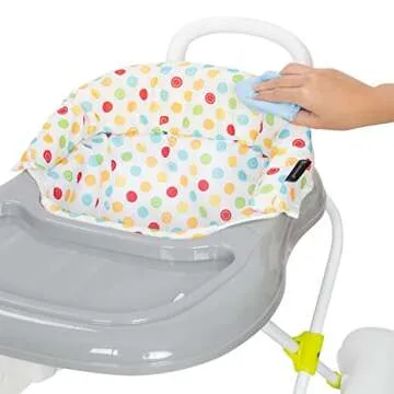 Yes, the cloth insert of the walker is removable and washable for easy cleaning.