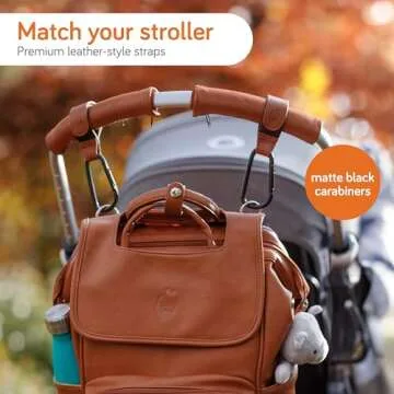 Show more If you’ve ever found yourself struggling with stroller bags or trying to juggle baby items while keeping your hands free, the Baby Uma stroller hooks are here to offer a stylish and practical solution! Designed to elevate your baby travel experience, these camel leather-style stroller clips are not just an accessory; they’re a necessity for every on-the-go parent.