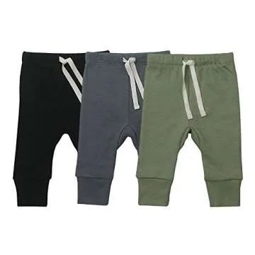 Baby Unisex 3-Pack Baby boy Pants, Infant Boys Girls Cotton Tapered Ankle Pants(Newborn, Black/Slate Gray/Sage)