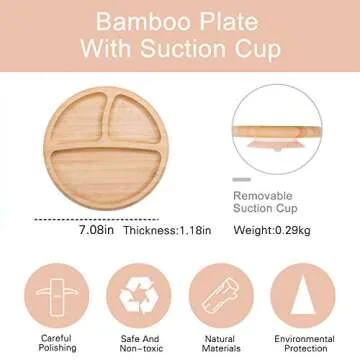 Baby Wood Plates - 1PC Baby Plates with Suction Baby Bamboo Plates for Infant Baby or Toddler Feeding Bamboo Suctions Plates for Babies and Kids with 5 Colors (Beige)