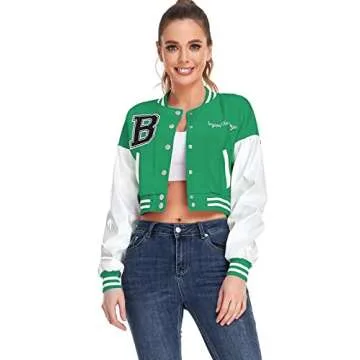 babyhealthy Womens Crop Varsity Jacket Stitched Leather Baseball Bomber Jacket Y2K Streetwear Short Coat A Green