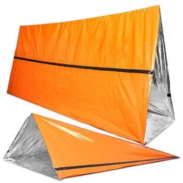 Show more Introducing the Back 40 Outfitters Emergency Tent and Emergency Bivy Sleeping Bag, a perfect companion designed for all outdoor enthusiasts, survivalists, and emergency-preparedness advocates. This ultralight survival tent is ingeniously crafted to accommodate up to two people, providing a reliable and safe haven in the great outdoors or during unforeseen emergencies. Constructed from durable Mylar, this innovative shelter not only reflects body heat but also stands resilient against various weather conditions, making it an essential tool for camping, hiking, and disaster preparedness. Lightweight and compact, it effortlessly packs into your backpack without weighing you down, ensuring you're always ready for whatever adventure awaits. Whether you're caught in a sudden storm or enjoying a long trek, trust Back 40 Outfitters to keep you warm and secure.