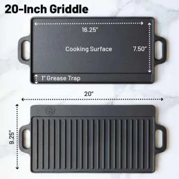 Backcountry Iron 20 x 9 inch Large Reversible Seasoned Cast Iron Grill / Griddle