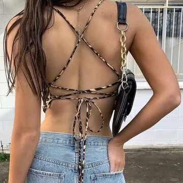 Backless Top Leopard Bandana Y2K Crop Tops for Women Trendy Criss Cross Strappy Camisole