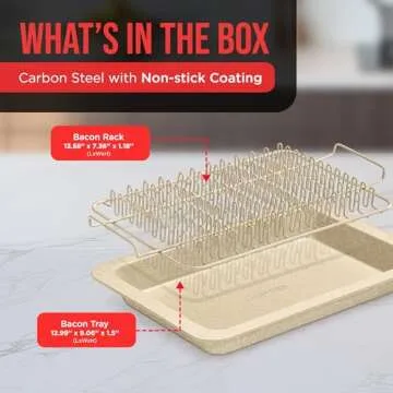 Bacon Tray - 2-Piece Set – Marble Coating - Durable, Non-Stick Cooking Tray for Bacon – White Stone Tray and Carbon Steel Rack