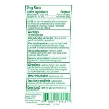 Show more Bactine MAX is the ultimate solution for every family's first aid kit, providing unparalleled relief to pain and itch from minor injuries. Imagine a product that not only cares for your wounds but also brings you peace of mind—this is what Bactine MAX offers. Formulated with 4% lidocaine, the maximum percentage allowed for over-the-counter topical anesthetics, this cleansing spray is specifically designed to cool and soothe the pain associated with scrapes, burns, bug bites, and even sunburn. With Bactine MAX, you no longer have to flinch at the thought of treating a wound, as users often rave about its soothing capabilities.