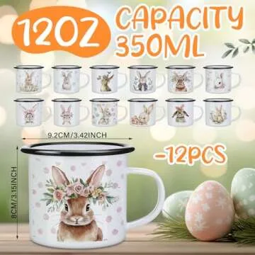 Show moreCelebrate the joyous occasion of Easter with the delightful Baderke 12 Set Easter Bunny Coffee Mugs. This charming collection includes twelve beautifully crafted mugs, each featuring adorable bunny designs that effortlessly embody the spirit of Easter. Made from high-quality enamel, these mugs are not only lightweight but also remarkably durable, making them a perfect choice for daily family usage or any themed gatherings. With a generous capacity of 12 oz (350 ml), they are excellent for serving your favorite beverages while adding a touch of whimsy to your table setting.