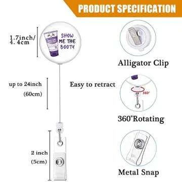 Show moreIntroducing the Badge Reel Retractable with Alligator Clip, a must-have accessory for nurses, medical professionals, students, and anyone who needs to carry ID badges with style and convenience. With a diameter of 1.25 inches (3.2cm) and a retractable extension of 24 inches (60cm), this badge holder offers the perfect combination of functionality and aesthetic appeal. The durable alligator clip ensures that your ID badge stays securely in place, allowing you to navigate through busy environments without worrying about losing your important identification.