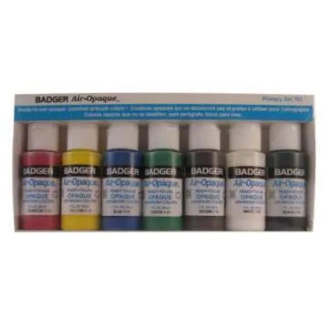 Show moreIntroducing the Badger Air-Brush Company Air-Opaque Airbrush Ready Water Based Acrylic Paint, a premium set of vibrant paint specially designed for airbrush enthusiasts! This set includes seven 1-ounce bottles of primary colors that boast quick-drying properties, low odor, and outstanding compatibility—making airbrushing projects smoother and more enjoyable than ever. Crafted from organic pigments in a water-based acrylic copolymer, this paint is not only eco-friendly but also 100% colorfast, ensuring that your artistic creations stay vivid and long-lasting. With the flexibility to intermingle with other Air-Opaque shades, you can easily achieve the exact color you envision.