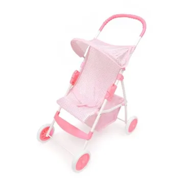 Show more Let your child's imagination soar with the adorable Badger Basket Folding Doll Umbrella Stroller, a perfect blend of style, practicality, and durability. Designed for dolls up to 18 inches, this charming pink and white stroller is not just a toy, but a companion that can accompany your little one on all her imaginative adventures. The sturdy construction features a durable metal frame, ensuring it withstands even the most energetic playtime without showing signs of wear and tear.