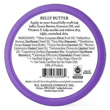 Show more Introducing Badger's Deep Moisturizing Stretch Mark Cream – a remarkable solution designed for expectant mothers seeking to maintain skin elasticity and combat the discomfort of dryness and stretch marks. This luxurious belly butter is not just a cream; it’s a nurturing experience that hydrates and soothes stretched skin, whether you're experiencing the changes of pregnancy or enjoying post-pregnancy recovery. Formulated with the finest gentle organic ingredients, it incorporates cocoa butter, coconut oil, and calendula to provide a rich and nourishing balm that tenderly cares for your skin.