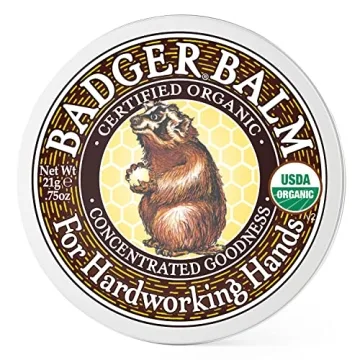 Show more Introducing the all-natural Badger Balm Organic Hand Balm, specially formulated for those who demand the best for their hardworking hands. This ultra-rich and ultra-moisturizing balm comes in a convenient tin that's perfect for home or on-the-go use. Each application delivers a deep hydration punch to even the harshest and most weathered skin, making it your ultimate companion for relief against chapped and cracked hands.