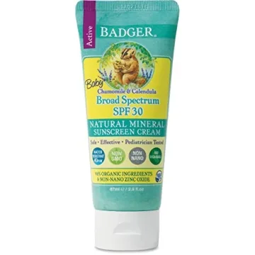 Show moreIntroducing the Badger SPF 30 Baby Sunscreen Cream—a premium, thoughtfully crafted sunscreen designed specifically for infants and toddlers. This remarkable product stands out as the ultimate choice for parents looking for a reliable sun protectant made with minimal ingredients. Badger's sunscreen features non-nano zinc oxide, renowned for its effectiveness and safety, providing broad-spectrum protection against harmful UVA and UVB rays without being absorbed into your baby’s sensitive skin. With just seven simple ingredients, including organic oils and botanicals, this sunscreen not only protects but also nourishes your child's delicate skin.