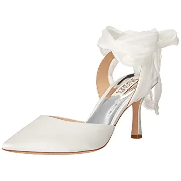 Show moreStep into a world of elegance and comfort with the Badgley Mischka Women's Blaze Pump. Crafted from high-quality white satin, these exquisite high heels are designed for women who value both style and practicality. With their luxurious leather lining, they promise to keep your feet feeling great, even after hours of wear. The unique charm of these pumps lies in the elegant bow design, giving you the flexibility to adjust the fit according to your preference. Whether dressed up for a wedding or a night out, these shoes ensure you make a fashionable statement.