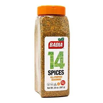 Show moreIntroducing Badia 14 Spices All Purpose Seasoning - the ultimate culinary companion for home chefs and cooking enthusiasts alike. This 20 oz no salt blend is a masterful creation from Badia Spices, a trusted family-owned company established in 1967. Their commitment to quality and authentic flavor shines through with a carefully crafted mix of 14 spices including garlic, onion, parsley, and a delightful array of others that will elevate any dish. Whether you're grilling, marinating, or seasoning, this versatile seasoning blend enhances your meals with a rich, bold flavor without the need for added salt.