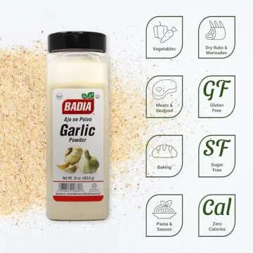 When comparing Badia Garlic Powder with other brands, it stands out due to its superior quality and natural flavor. Many competitors may add fillers or preservatives, which can compromise taste and nutritional value. Badia ensures a pure garlic experience in every pinch, offering better taste at an affordable price. Additionally, while some competitors feature complex packaging, Badia's straightforward presentation and commitment to quality make it a more trustworthy option for culinary endeavors.