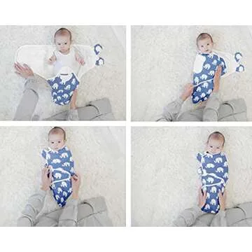 BaeBae Goods Swaddle Blanket, Adjustable Infant Baby Swaddling Wrap Set of 4, Baby Swaddling Wrap Blankets for Boys and Girls Made in Soft Cotton (Navy Elephants, 0-3 Months)