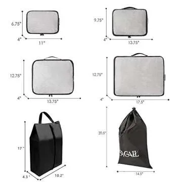 BAGAIL 6 Set Packing Cubes: Travel Luggage Organizers with Laundry Bag