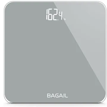 Show more Introducing the BAGAIL Bathroom Scale, an epitome of elegance and functionality designed for your everyday health needs. This digital weighing scale features a stunning shine-through LED display that vanishes when not in use, providing a sleek and minimalistic aesthetic that complements any bathroom decor. With its ultra-slim design and a robust 11 x 11 inch tempered glass platform, it seamlessly blends style with usability, ensuring a perfect fit in compact spaces.