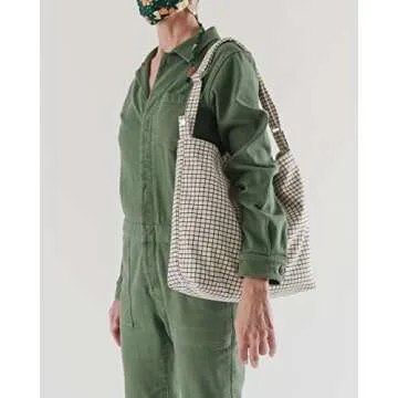 BAGGU Duck Bag Canvas Tote, Essential Everyday Tote, Spacious and Roomy, Natural Grid (2021)
