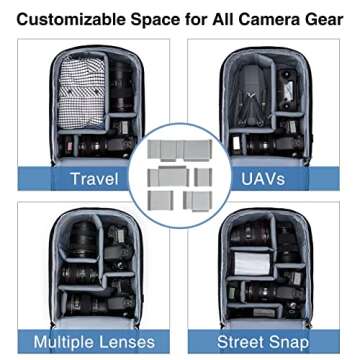 BAGSMART Camera Bag Backpack, DSLR SLR Camera Case Fits 13.3 Inch Laptop, Waterproof Photography Backpacks with Rain Cover Tripod Holder for Women Men, Black