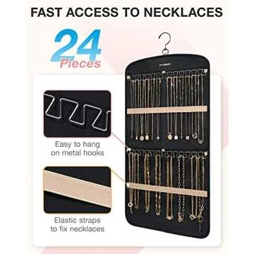 BAGSMART Hanging Jewelry Organizer, Necklace Holder Anti-tangle Earrings Rings Hanger with 10 Jewelry Bags Travel Storage Roll with Pockets Hang on Closet, Wall, Door,1 Piece, Small, Black
