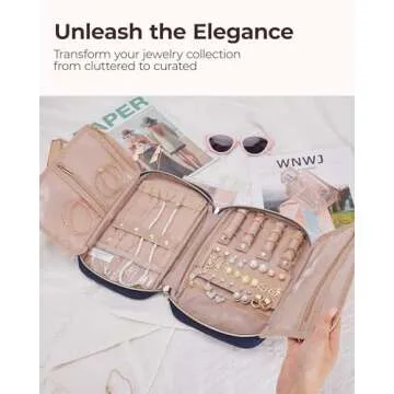 BAGSMART Jewelry Organizer Bag Travel Jewelry Storage Cases for Necklace, Earrings, Rings, Bracelet, Blue
