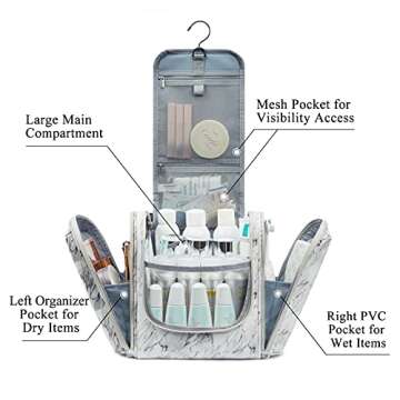 BAGSMART Large Toiletry Bag Hanging Travel Toiletry Bag for Women, Toiletry Organize Bag for Traveling, Water-resistant Cosmetic Makeup Travel Bag for Full Sized Toiletries White Marble Pattern
