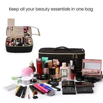 Show moreThis exquisite cosmetic case is a perfect blend of style, functionality, and durability, designed to meet all your beauty maintenance needs. With dimensions of L12.6 x W5.7 x H6 inches, it boasts an extra-large capacity to accommodate everything from full-sized cosmetics to toiletries. There's ample space in the main compartment to even stow a Dyson Hair Dryer Set and curling iron comfortably, while the top section is tailored for your makeup brushes and beauty tools. This bag is not just for personal use; it's an ideal companion for 5-15 day trips, be it for vacations, business travels, or casual getaways.