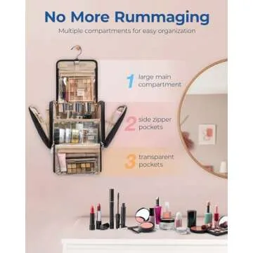 BAGSMART Makeup Bag for Women with Hanging Hook - Portable Cosmetic Case, Large Capacity Door Room Essentials Travel Organizer for Full Sized Cosmetics and Toiletries, Black