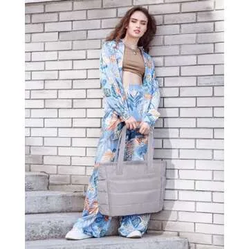 BAGSMART Tote Bag for Women, Lightweight Puffy Tote Bag with Compartments Shoulder Bag Handbag Quilted Shoulder Bag Handbag for Travel, Work, Beach, Gym, Shop(Gray)