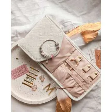 This jewelry organizer is ingeniously designed with 5 unique zones to accommodate all types of jewelry. The long buckled band is perfect for rings, while the earrings panel provides a dedicated space to prevent those beloved accessories from tangling. The necklace buckled strap helps keep your necklaces safe, and the interlayer visible zip pouch is ideal for storing small items like diamond studs or brooches. Additionally, the long zip pocket offers even more storage, ensuring your bracelets and watches are kept secure during transit.