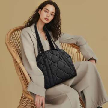 Show more Discover the Bagstash Puffer Tote Bag for Women, your new go-to accessory that beautifully combines style, convenience, and comfort. Made from high-quality nylon fabric—this bag is not just lightweight at only 1lb but also features a soft padded interior, making it perfect for everyday use. This spacious and chic tote can comfortably hold a 15.6-inch laptop, making it a fantastic companion for work, gym sessions, and casual outings. The stylish quilted design ensures that you will stand out, effortlessly enhancing any outfit while providing practical storage solutions.