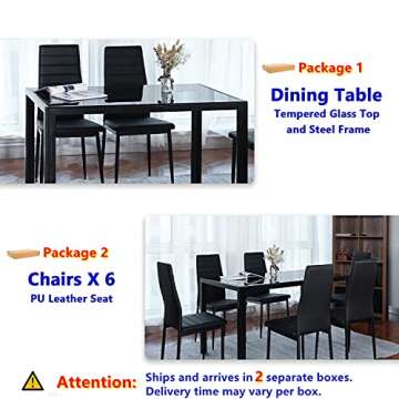 BAHOM 7 Piece Kitchen Dining Table Set for 6, Glass Dining Table and 6 Chairs PU Leather for Breakfast (2 Boxes)