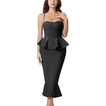 baicpo Elegant Midi Fishtail Bandage Dress for Women Bodycon Sleeveless Spaghetti Strap Cocktail Party Dress Black