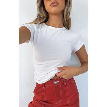 Show moreIntroducing the **BAIGRAM AKLOPVII Women’s Basic Slim Fit Crop Top Tee Shirt** – your new go-to for a chic and comfortable look! Crafted from a premium blend of polyester and spandex, this high-stretch tee offers not only a flattering slim fit but also a delightfully soft feel against your skin. The round neck design and short sleeves make it a versatile staple that effortlessly adapts to any outfit and occasion. Available in a spectrum of stylish colors – from vintage brown and punk black to retro apricot and bright blue – this crop top is perfect for creating a trendy Y2K aesthetic. Whether you're pairing it with high-waisted jeans or layering it under a crisp blazer, this crop top complements your shape while keeping you cool and fashionable all day.