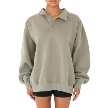 BAIGRAM Women Quarter Button Up Collar Polo Sweatshirt Oversized Fleece Fall Casual Pullover Tops 2024 Cute Outfits