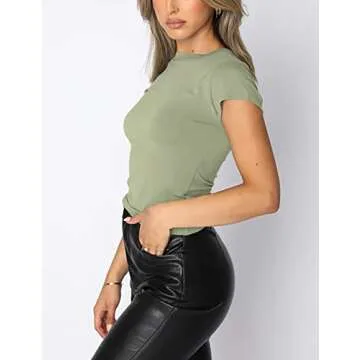 BAIGRAM Women’s Basic Slim fit Crop Top Tee Shirt Short Sleeve Workout Round Neck Cropped Tshirt Pea Green