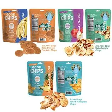 Baked Fruit Snack Pack by GOOD CHIPS. Pineapple, Sweet Plantain Banana and Apple Chips. Oil Free, Vegan, Non-Gmo, Variety Pack of 6