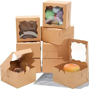 Bakepacker Kraft Bakery Boxes with Window 4x4x2.5 inches Small Size Pastry Boxes Mini Cookie Boxes for Bakerys Thick & Sturdy (100 Packs)